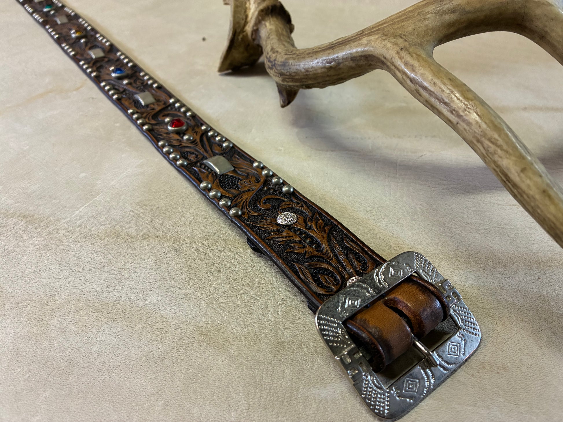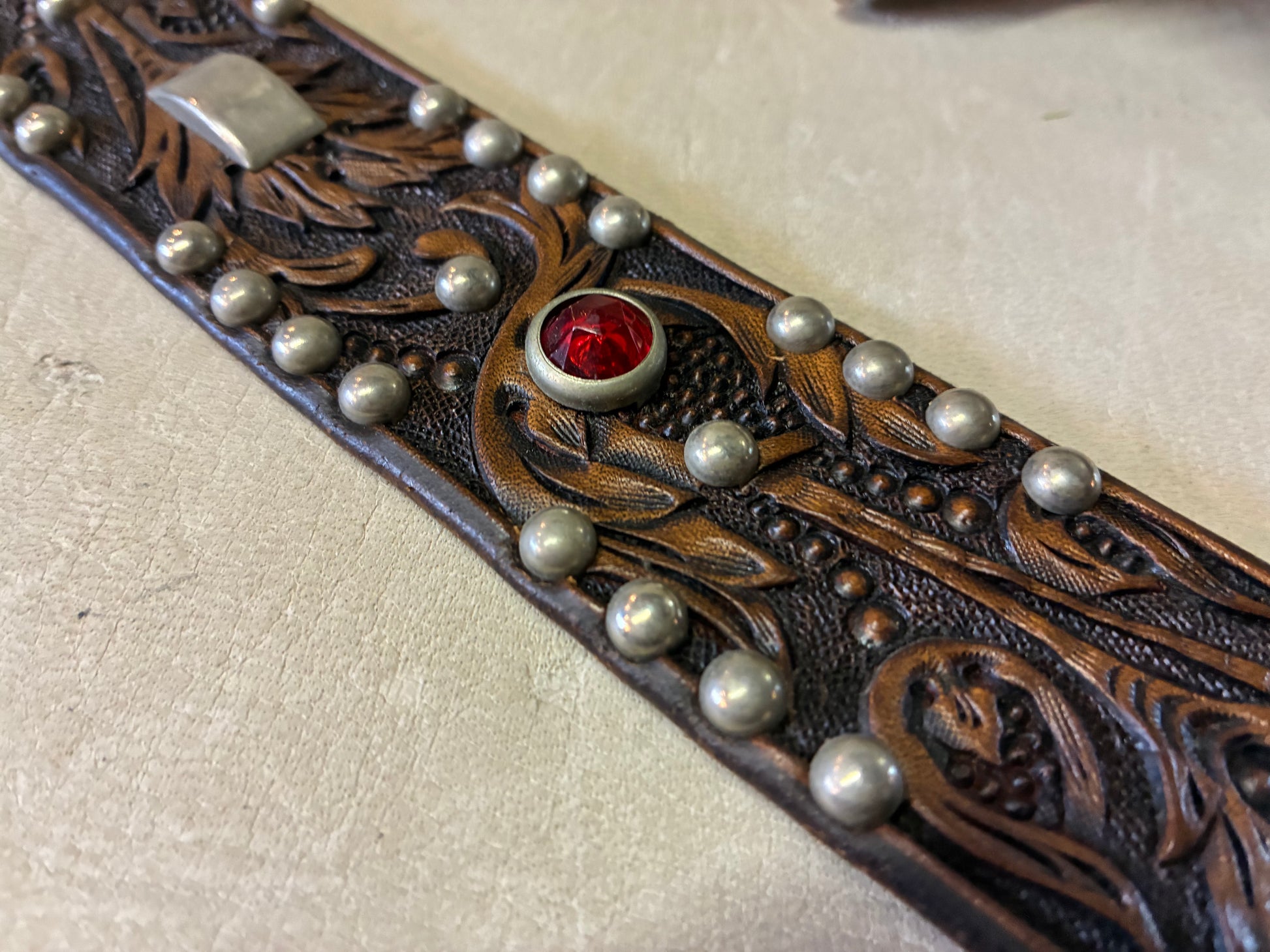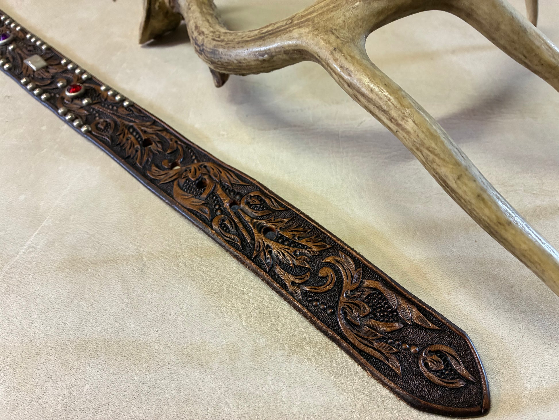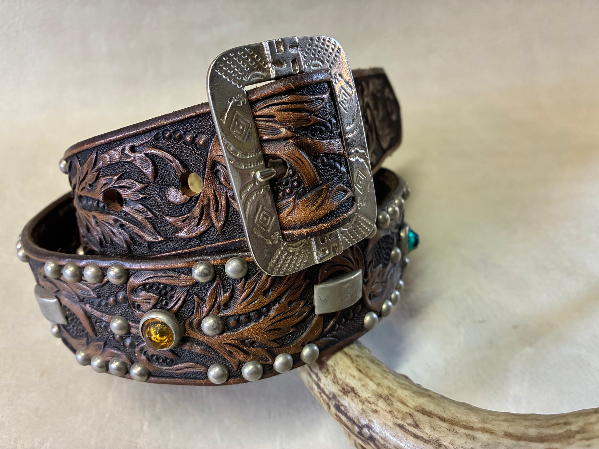 Hand Carving Leather Belt W/Vintage Studdedオーダーメイド