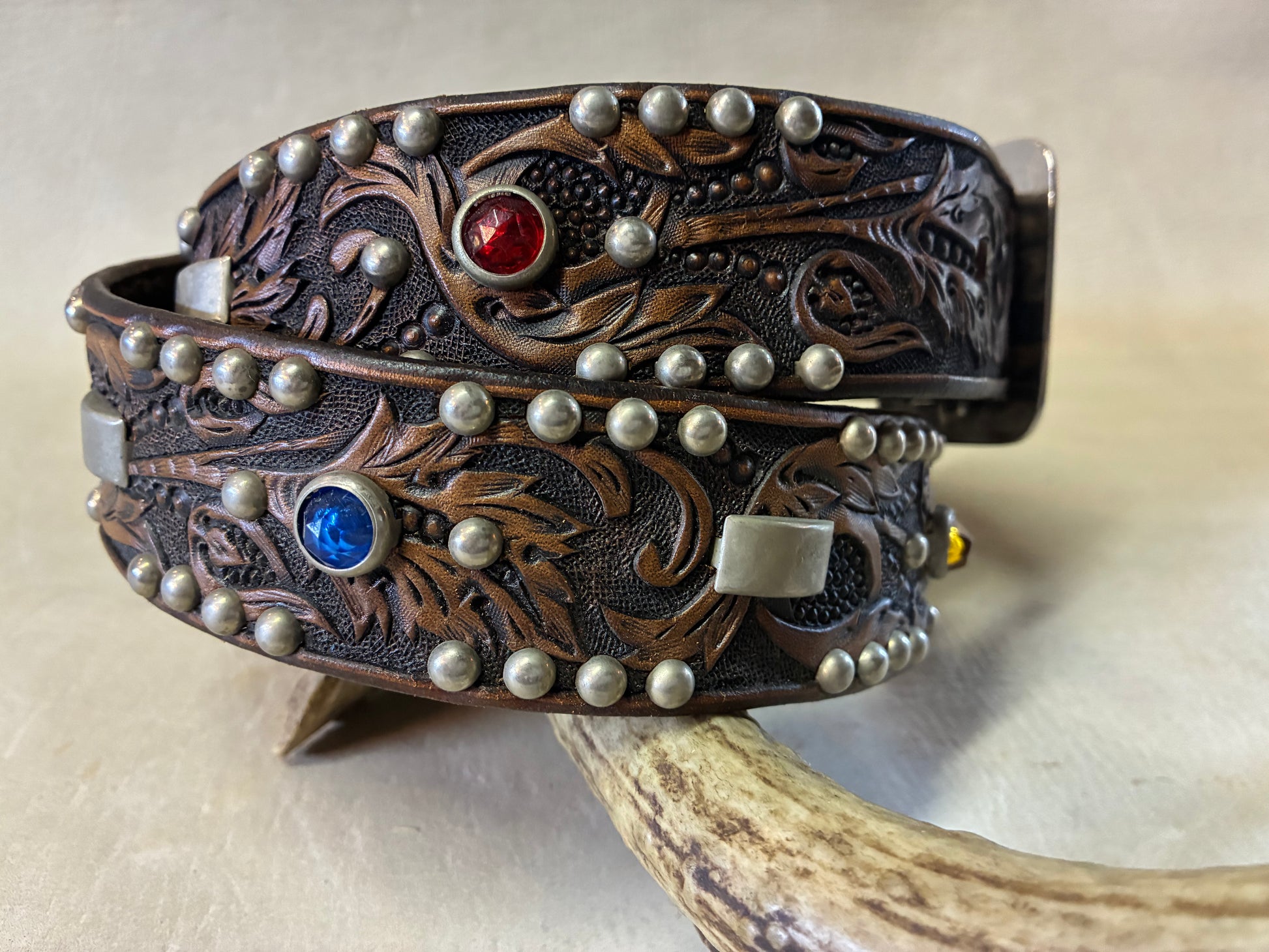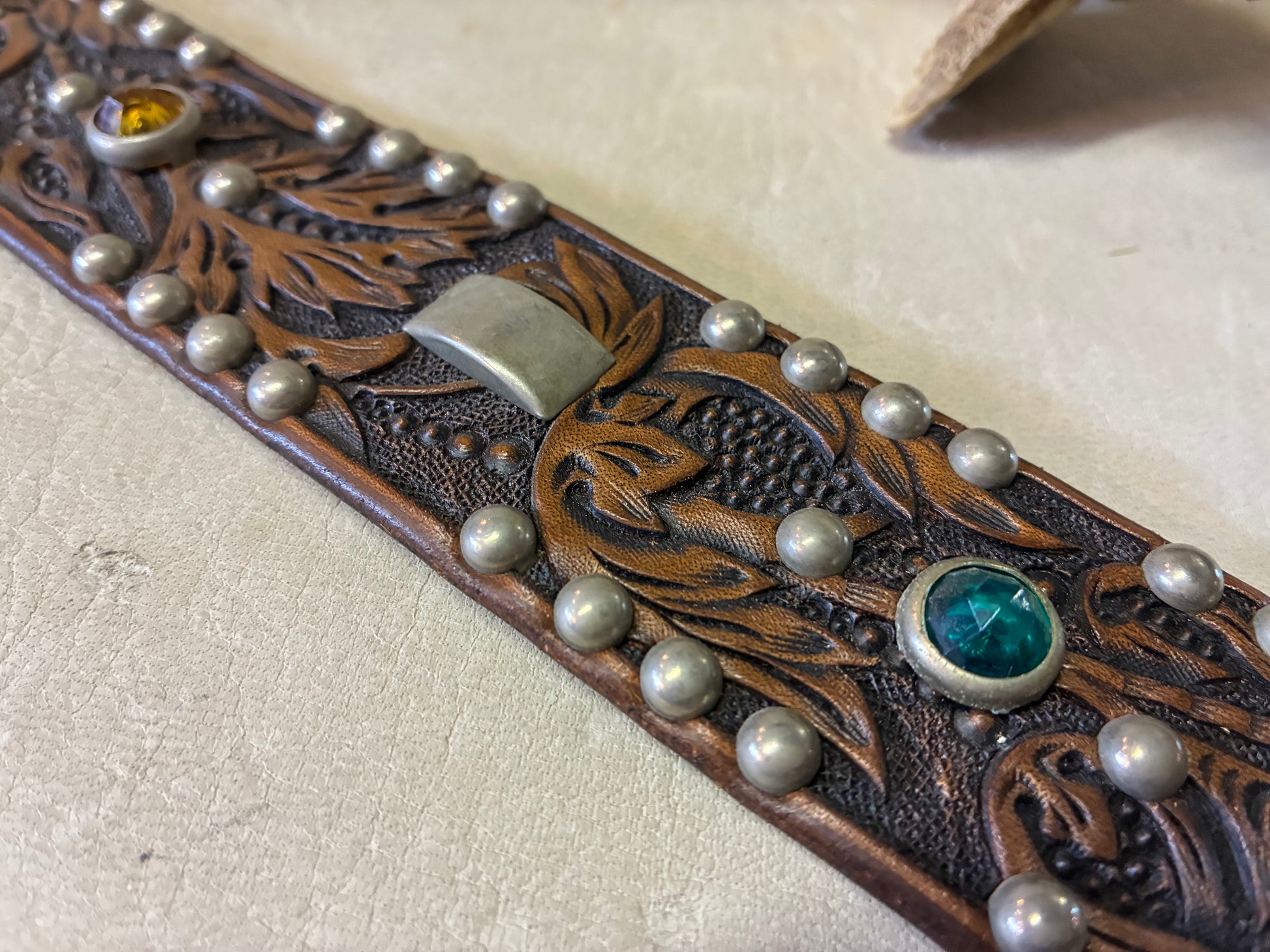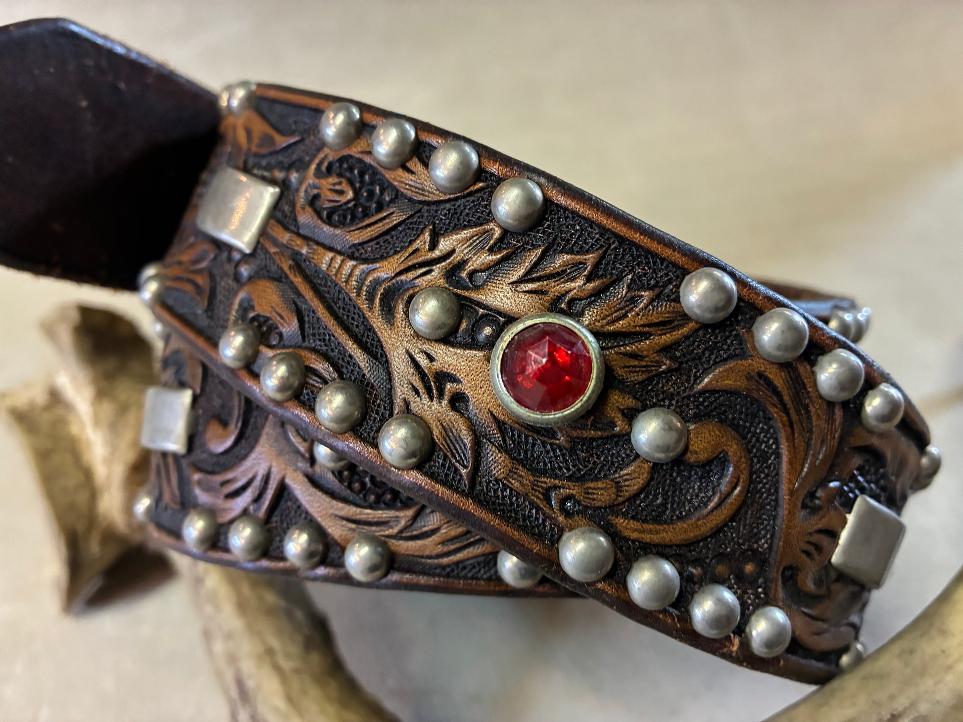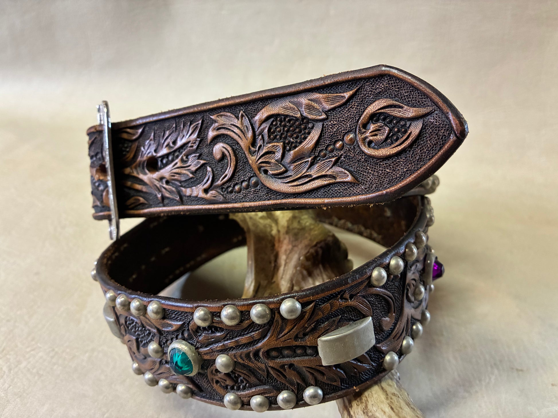 Hand Carving Leather Belt W/Vintage Studdedオーダーメイド