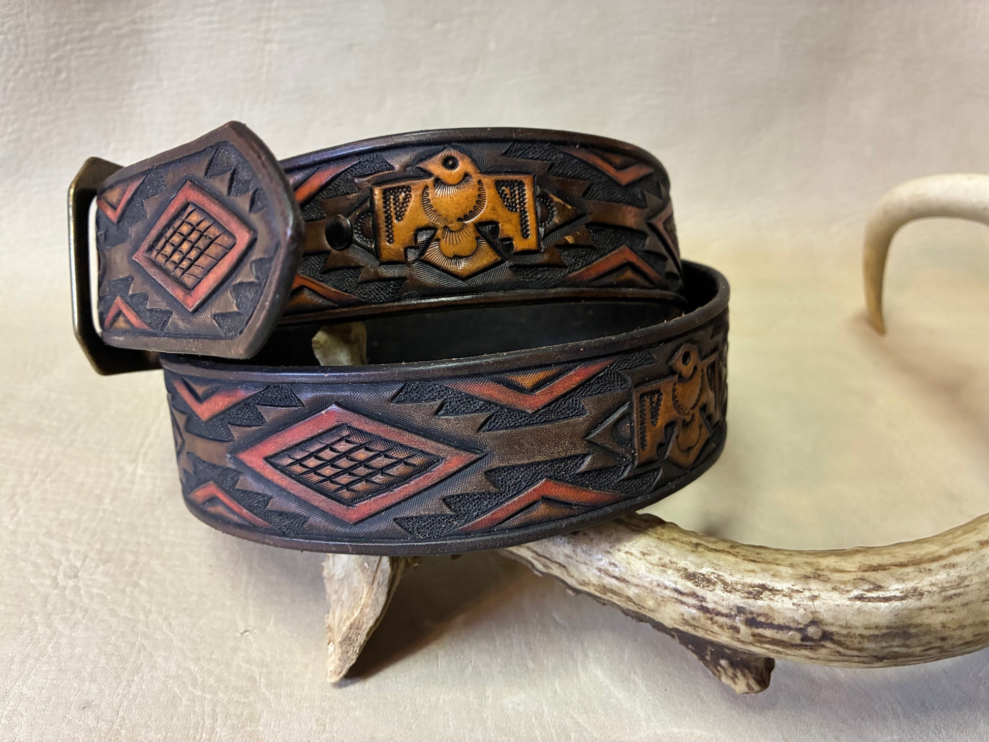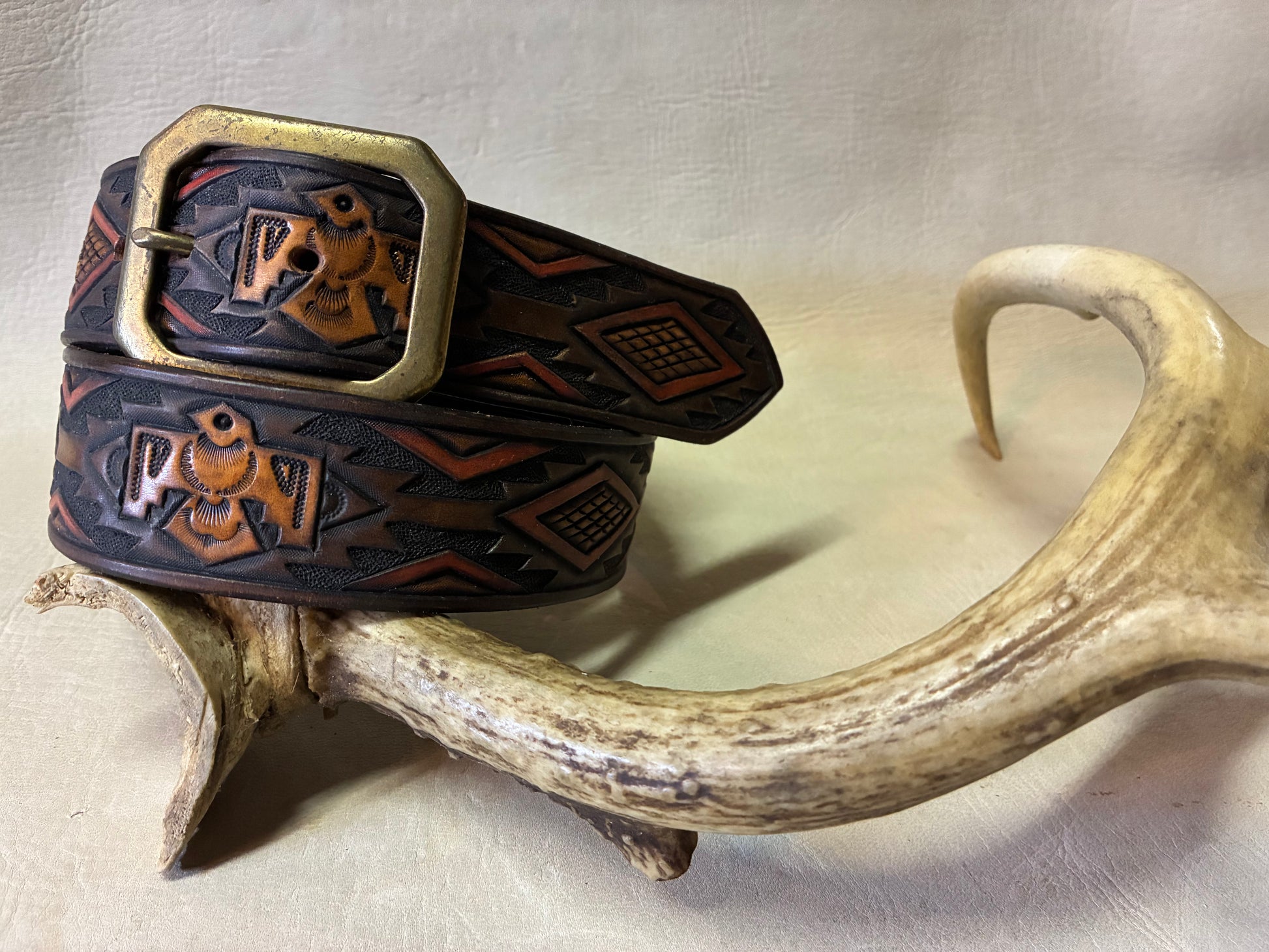 Hand Carving Thunderbird Belt Antique Finish オーダーメイド