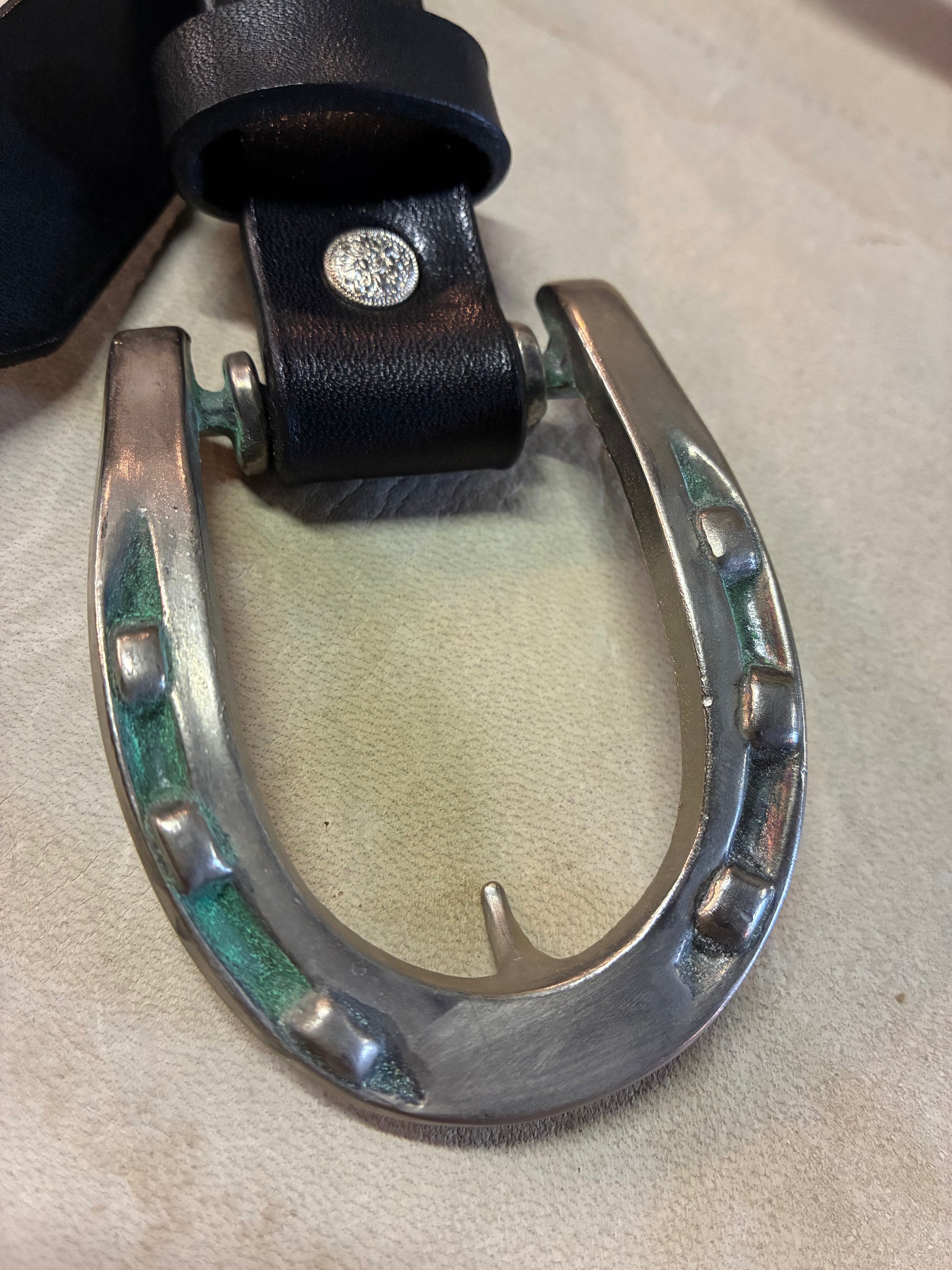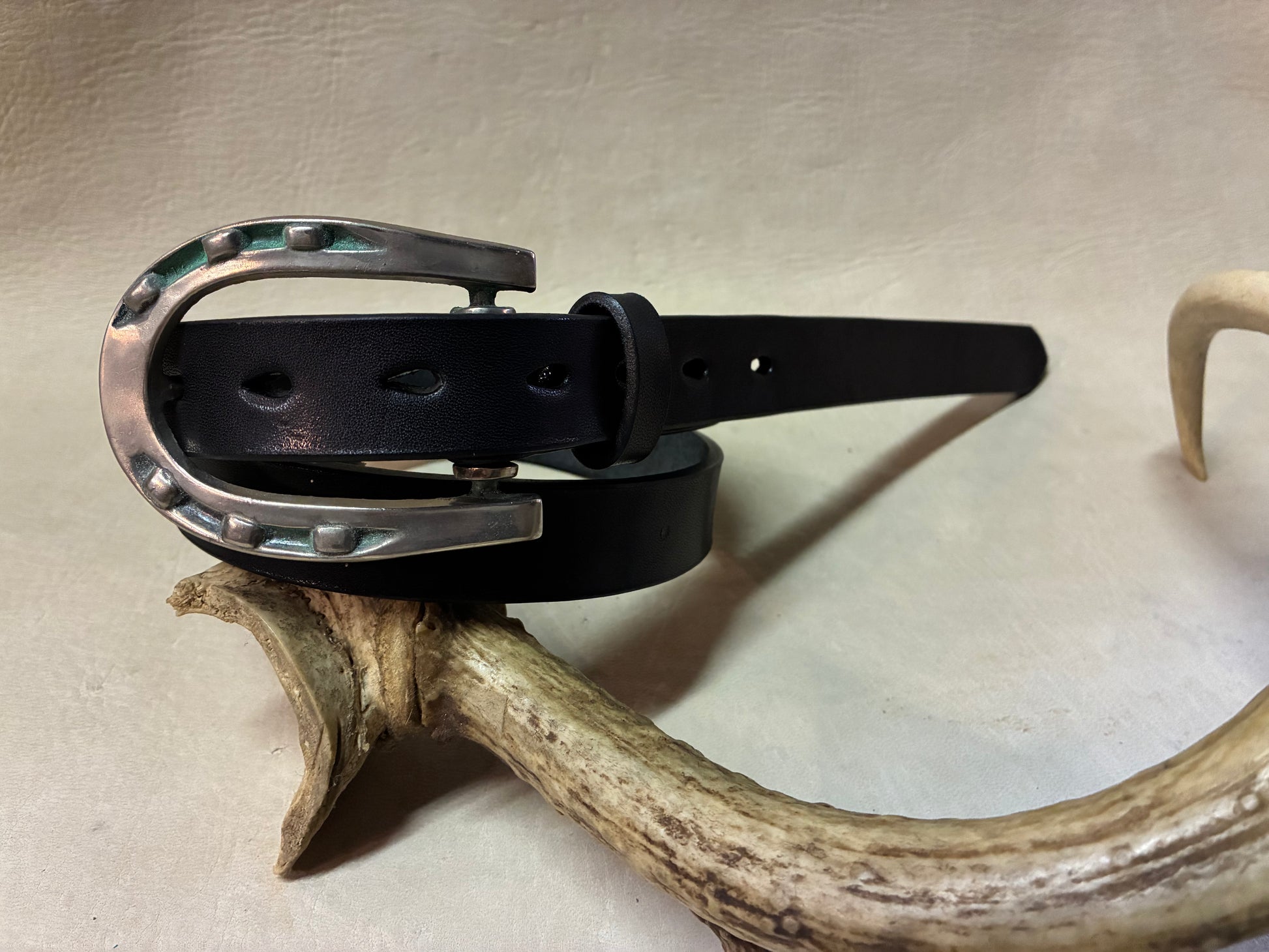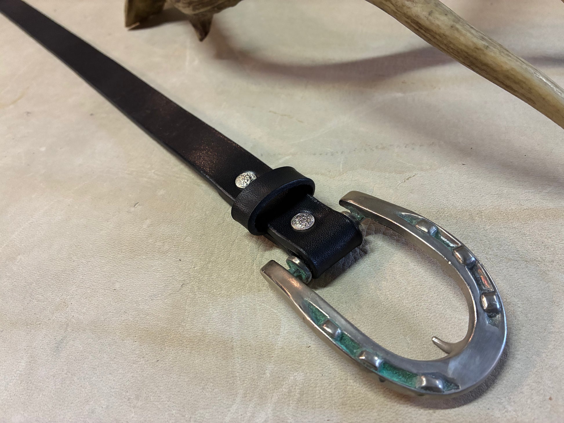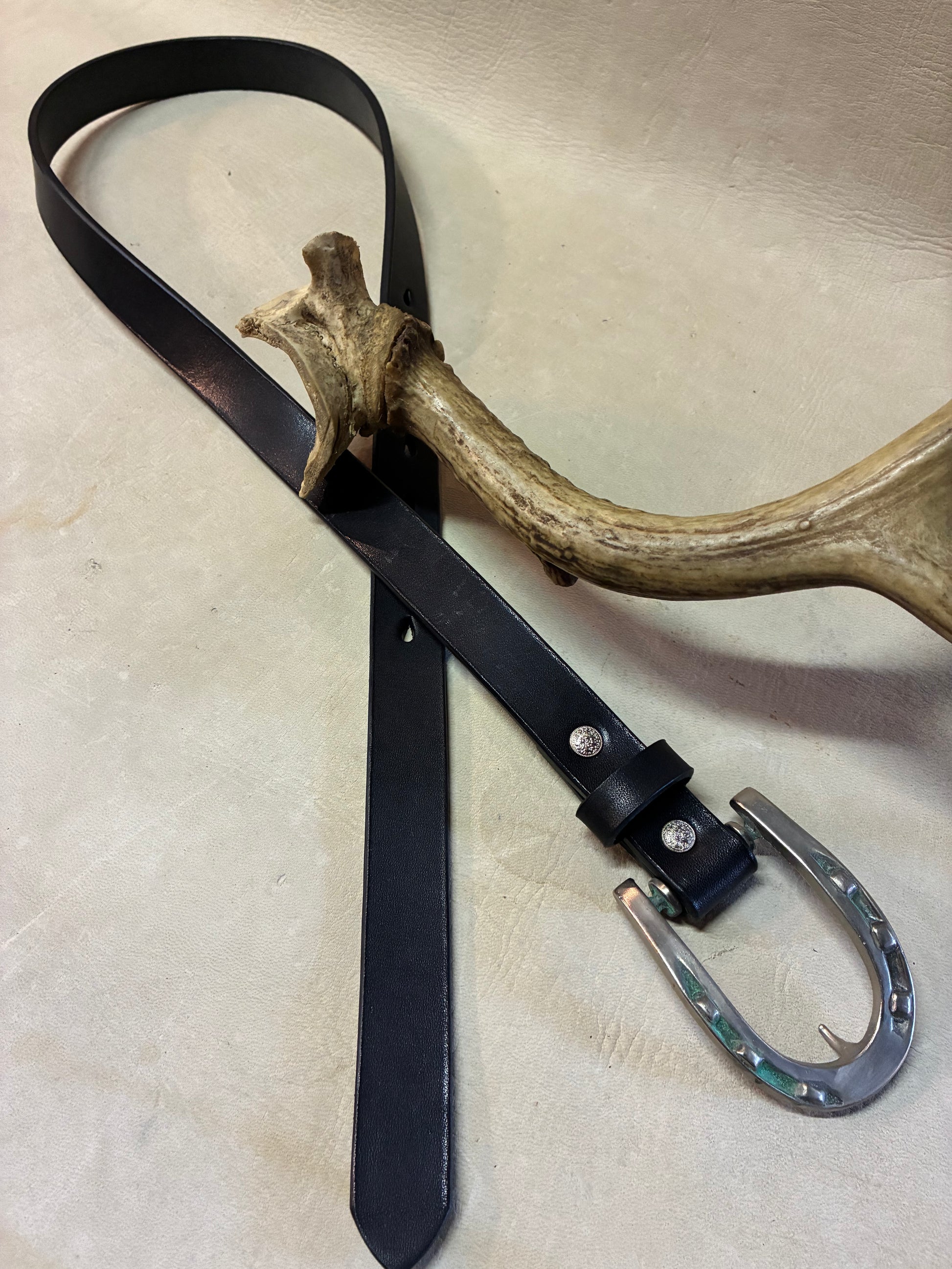 Horse Shoe Buckle Black Narrow Belt