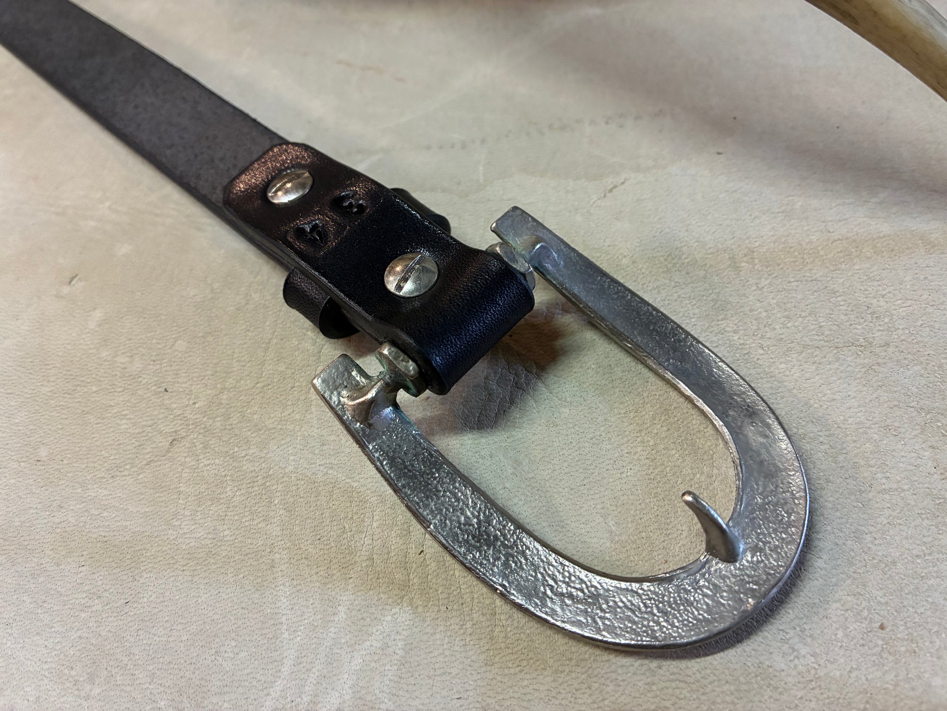 1950年代に作られたHose shoeのストラップバックルを新たにアレンジしてRoosterKing&Co.,のオリジナル制作をしたものを使用したベルトです。
