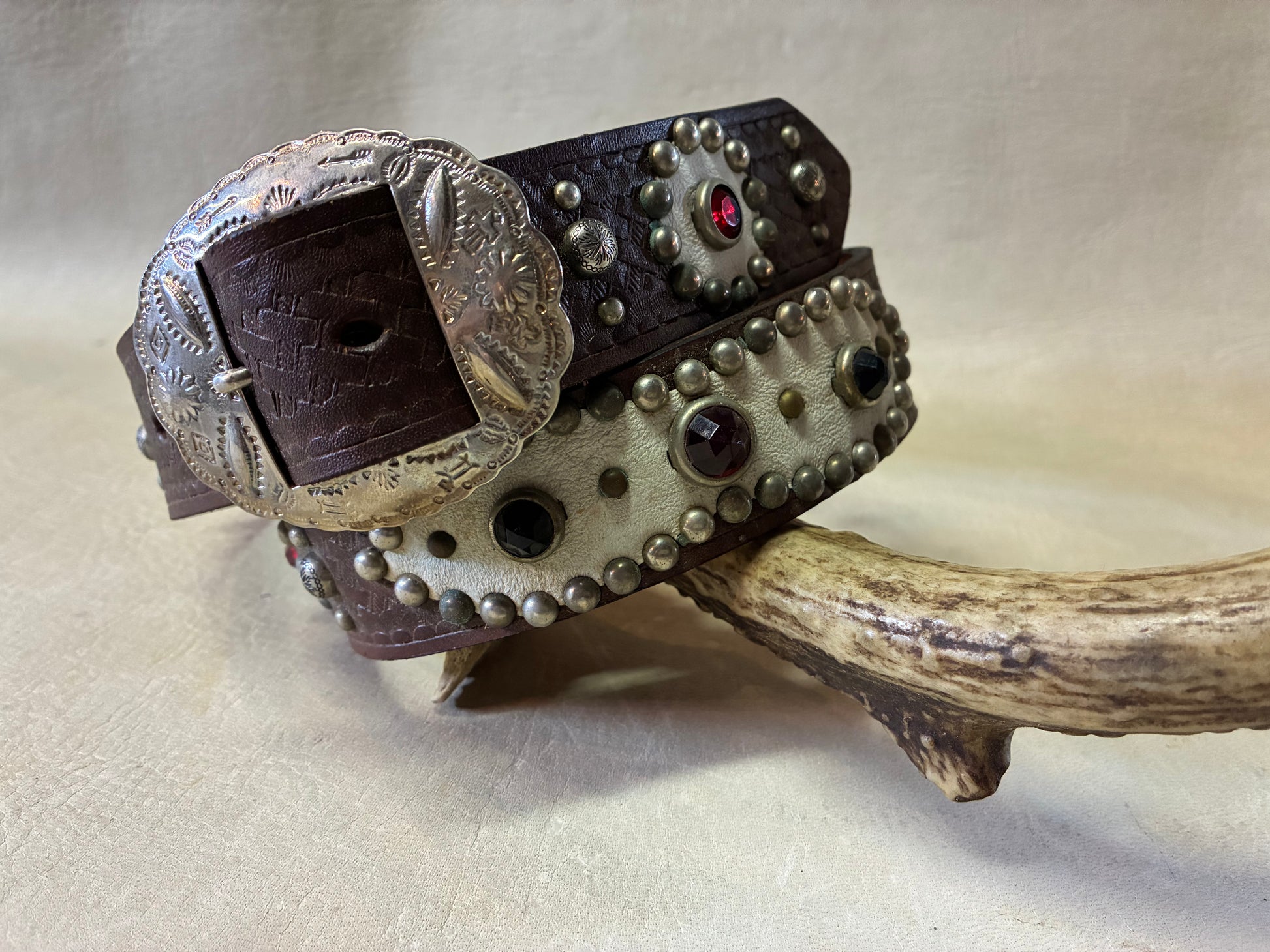 Native American Buckle Studded Belt